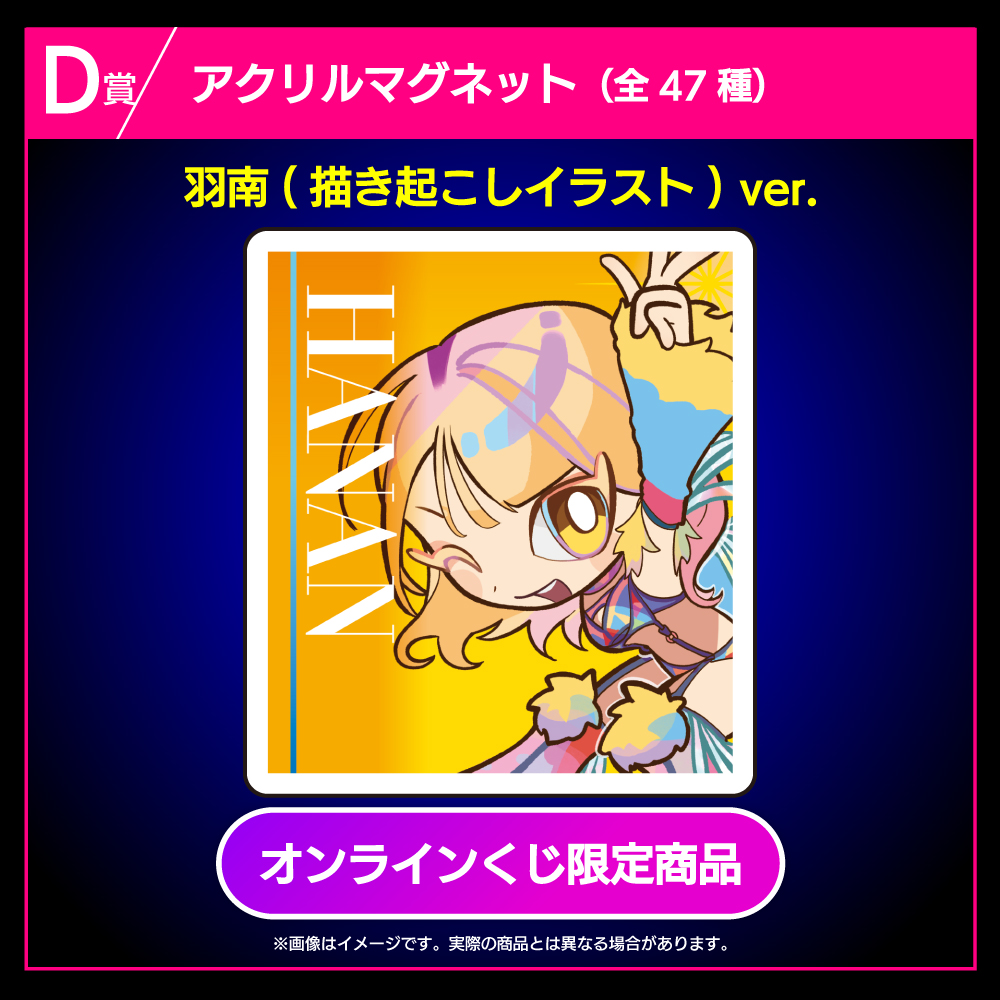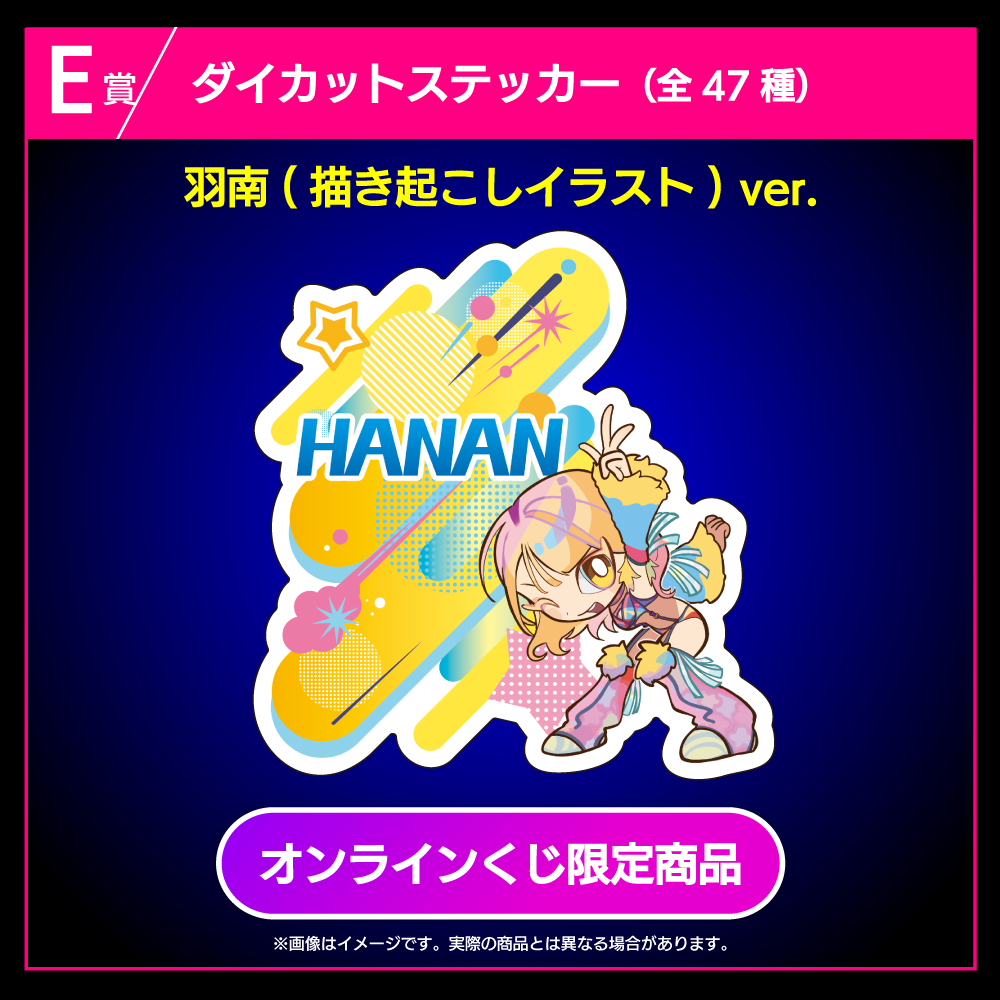 ※羽南、安納サオリ、鹿島沙希、スターライト・キッドの描き起こしイラストver.はオンラインくじ限定商品です。
