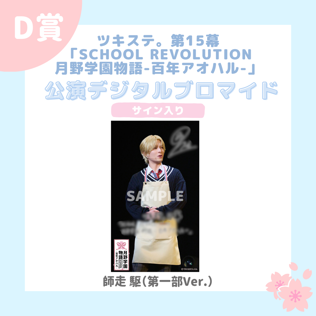 キャストのサイン入り『SCHOOL REVOLUTION 月野学園物語 -百年アオハル-』公演デジタルブロマイド(全28種)です。