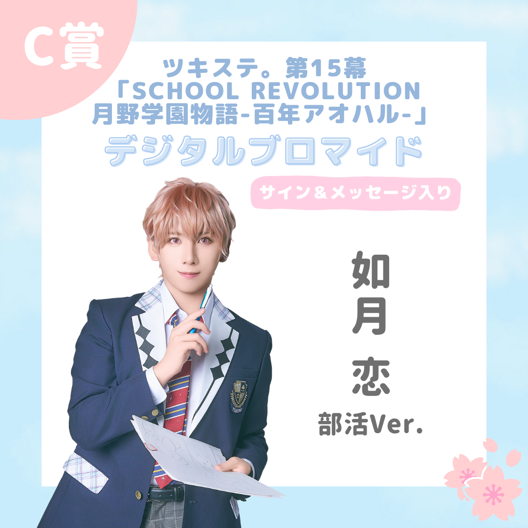 ※サイン&メッセージ入り、ツキステ。第15幕「SCHOOL REVOLUTION 月野学園物語 -百年アオハル-」デジタルブロマイドは、当選者様が個人でお楽しみになるためのものとなります。画像データの再配布や、SNSやBLOG等への掲載・拡散は、ご遠慮ください。